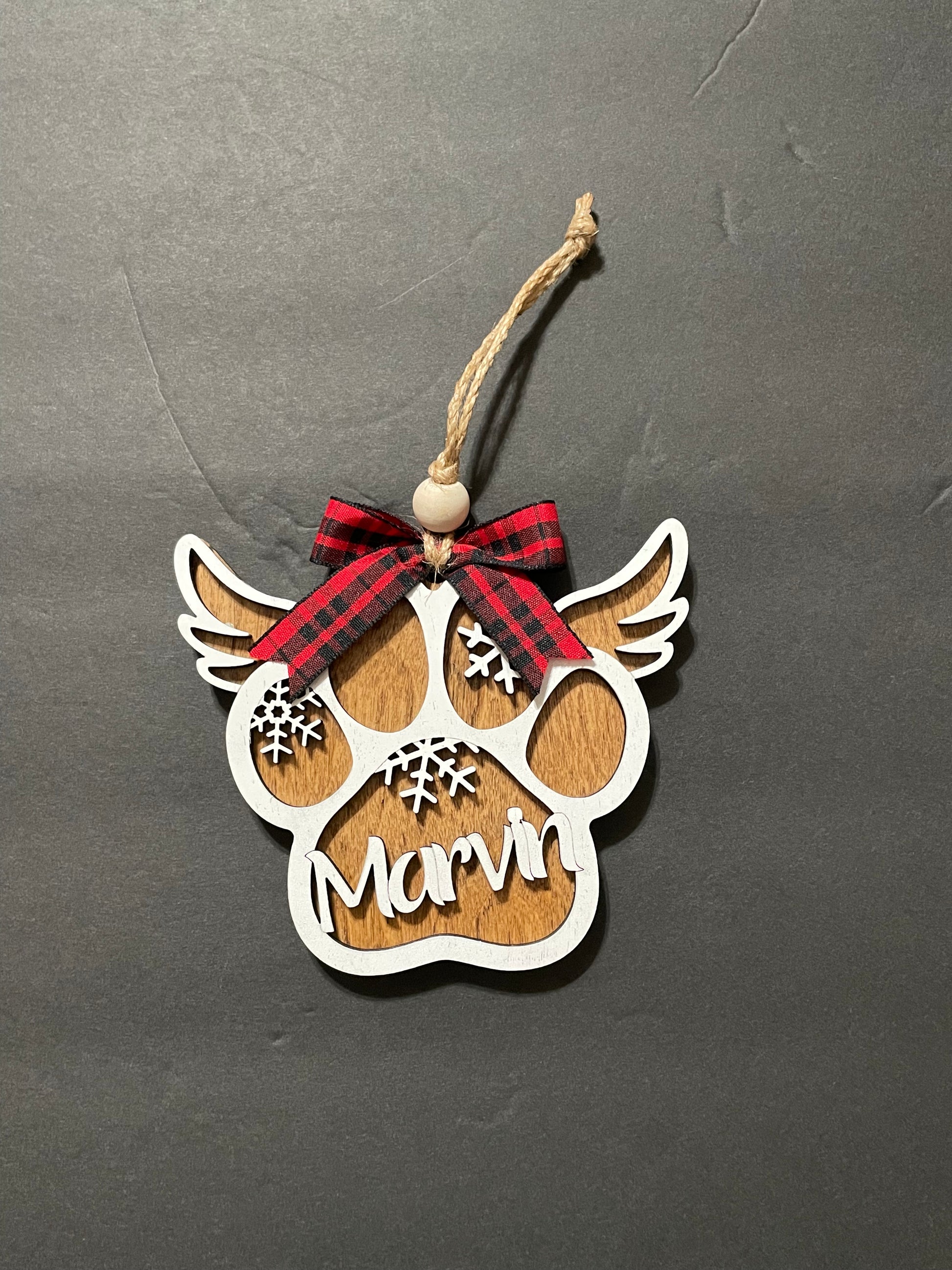 Show your love for your pet with these ornaments that can be on display all year long. Choose between a paw (with or without wings) or a bone.