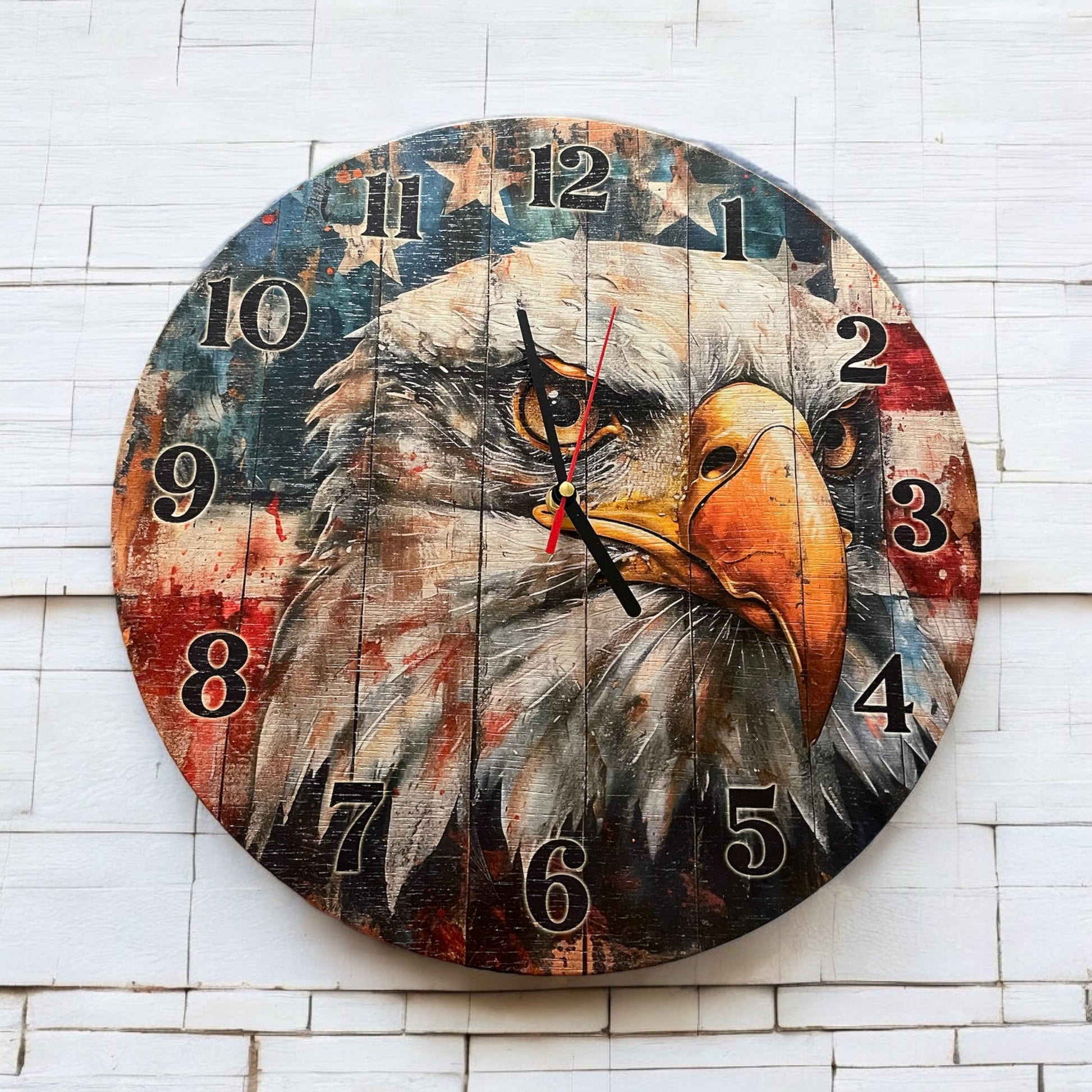 This unique wall clock is perfect for adding a warm, patriotic element to your living space, office, or cabin. It makes a thoughtful gift for nature lovers, patriots, or anyone who appreciates handcrafted art.