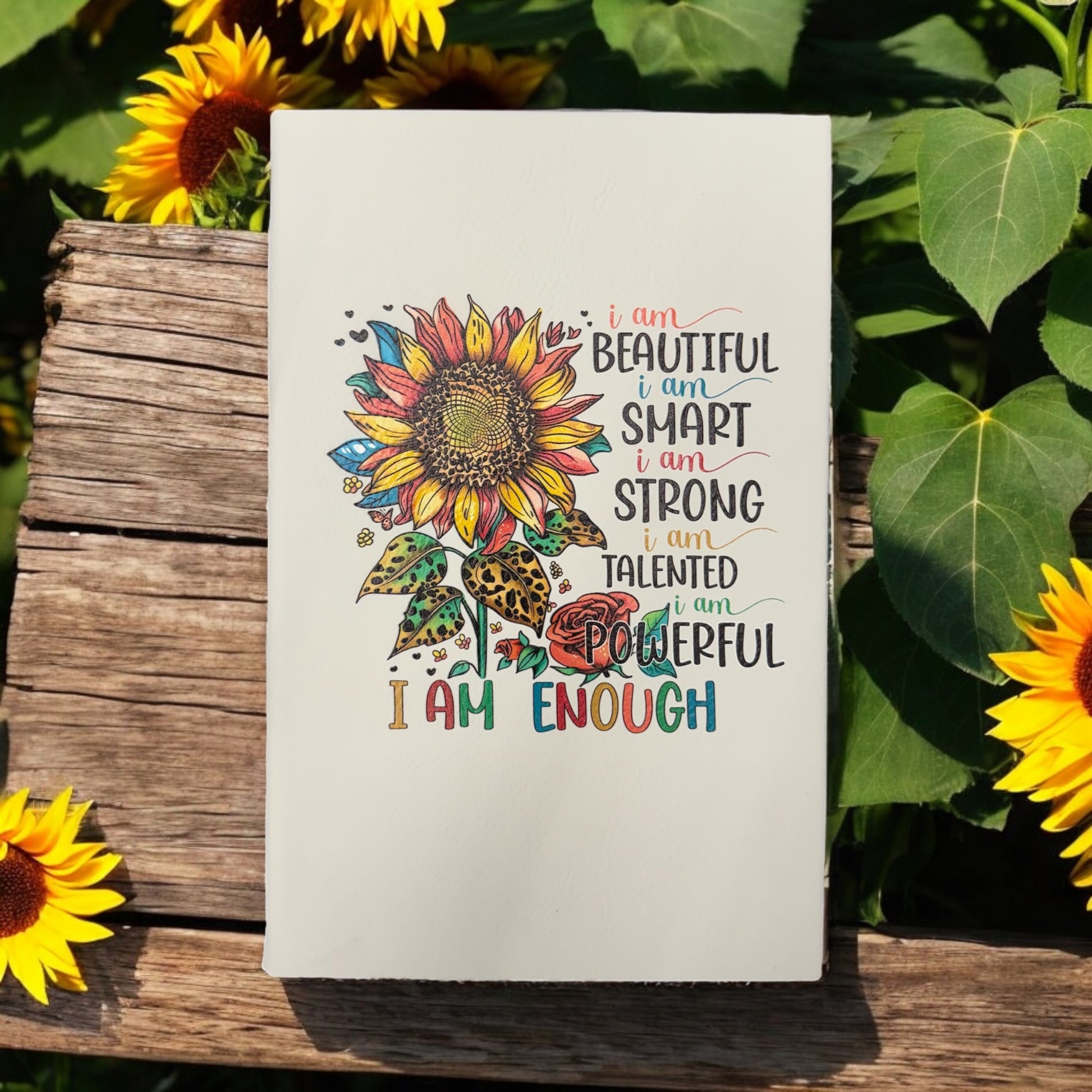 These elegant leatherette journals are UV Printed on the cover. A perfect size to slip into your backpack, brief case, or purse, the journal features 112 lined pages and a black satin bookmark.
